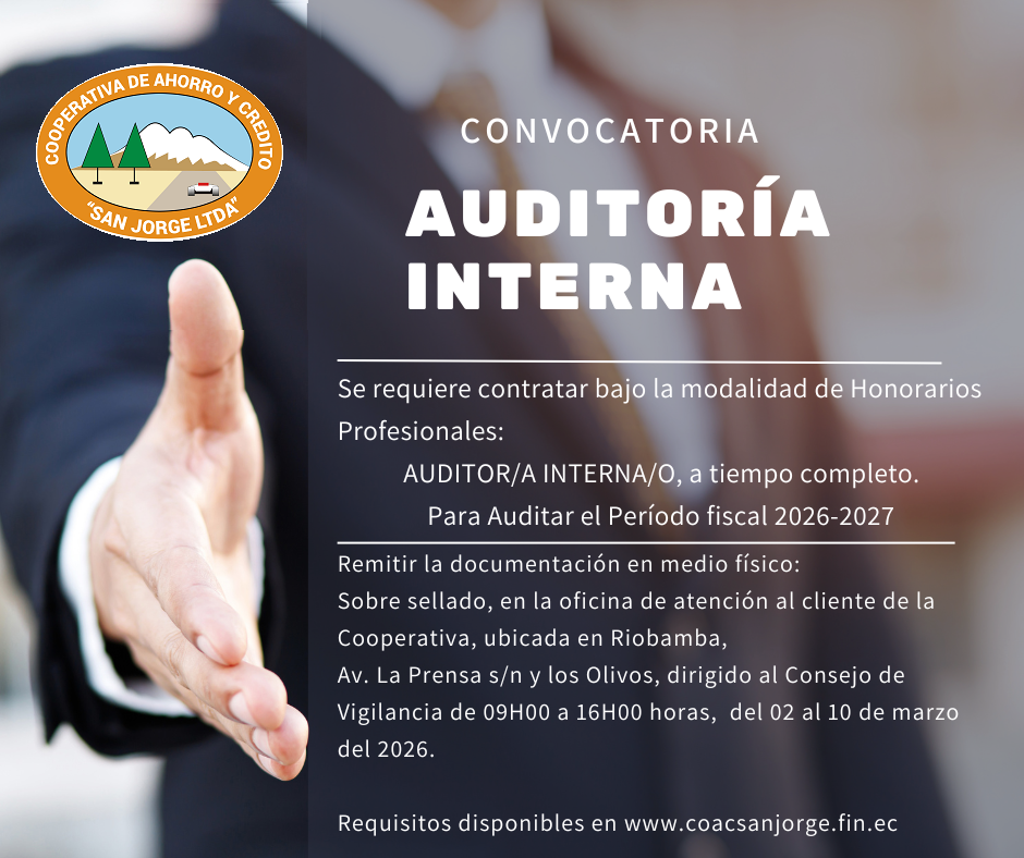 >>> Descargar Convocatoria AUDITOR INTERNO <<< >>> Descargar Convocatoria AUDITOR EXTERNO <<< >>> Descargar Convocatoria <<< INGRESAR Agencia Cuenca VER LISTA DE REPRESENTANTES A LA ASAMBLEA AHORROS Planifica tus ahorros a corto, mediano o largo plazo. CRÉDITOS Créditos fácil y eficiente para cualquier tipo de negocio o proyecto. INVERSIONES Invierta en pólizas de seguro y haga que su dinero trabaje para usted. COBERTURA COSEDE Su dinero está seguro NUESTROS ALIADOS Juntos llegamos más lejos Presentamos a nuestros aliados que contribuyen y nos apoyan en el desarrollo de nuestros proyectos