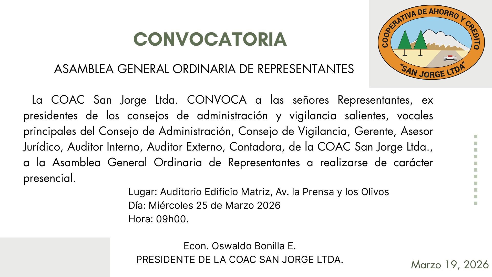INGRESAR Agencia Cuenca VER LISTA DE REPRESENTANTES A LA ASAMBLEA AHORROS Planifica tus ahorros a corto, mediano o largo plazo. CRÉDITOS Créditos fácil y eficiente para cualquier tipo de negocio o proyecto. INVERSIONES Invierta en pólizas de seguro y haga que su dinero trabaje para usted. COBERTURA COSEDE Su dinero está seguro NUESTROS ALIADOS Juntos llegamos más lejos Presentamos a nuestros aliados que contribuyen y nos apoyan en el desarrollo de nuestros proyectos